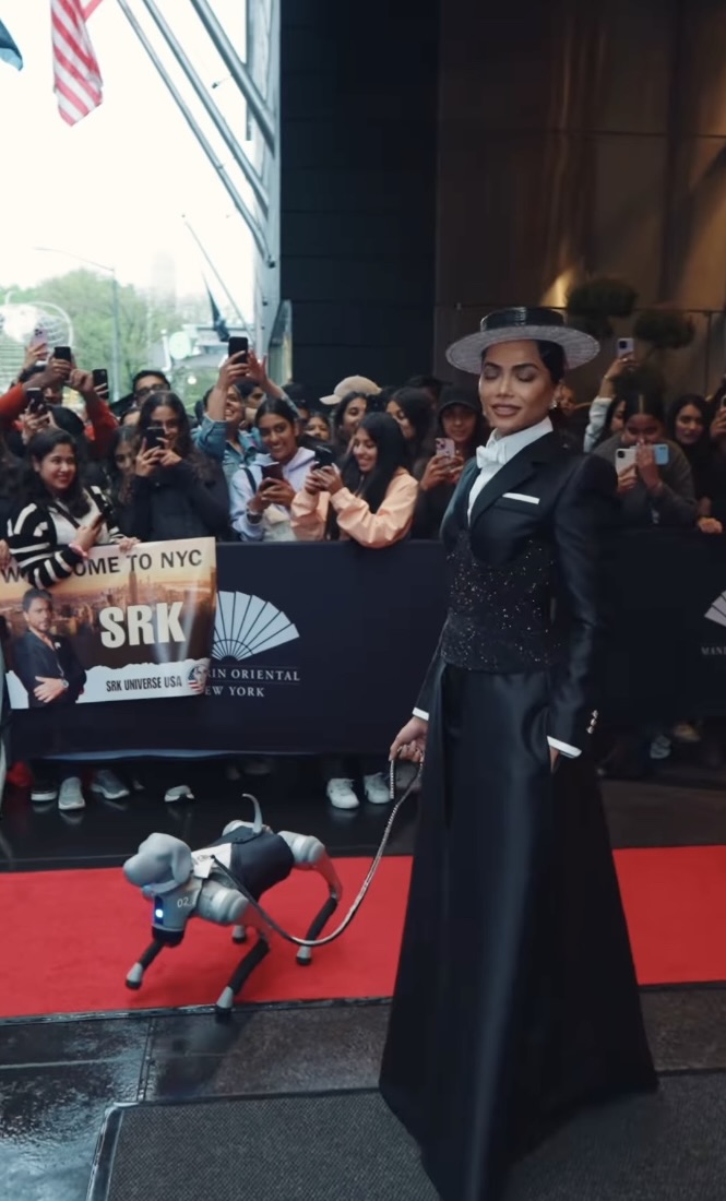 If Schiaparelli brought the heartbeat, Mona Patel brought the bark. At the Met Gala 2025, Patel didn’t walk the red carpet alone; she got the real star, “Vector,” her AI-powered robotic dachshund, trotting alongside her on a 1000-carat emerald-cut diamond leash. Yes, you read that right. A robot dog at the Met Gala was wearing a jaw-dropping diamond leash. Because why should humans have all the fun?